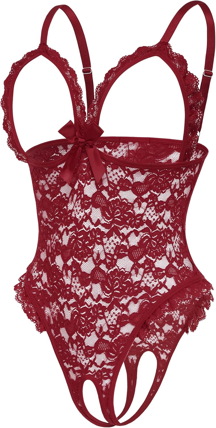 - 💋sexy lingerie for women naughty outfits features ruffle deep v neck, big bow decor,tummy control full lace bodysuit, cutout bottom for easy access,adjustable shoulder strap for best fit.