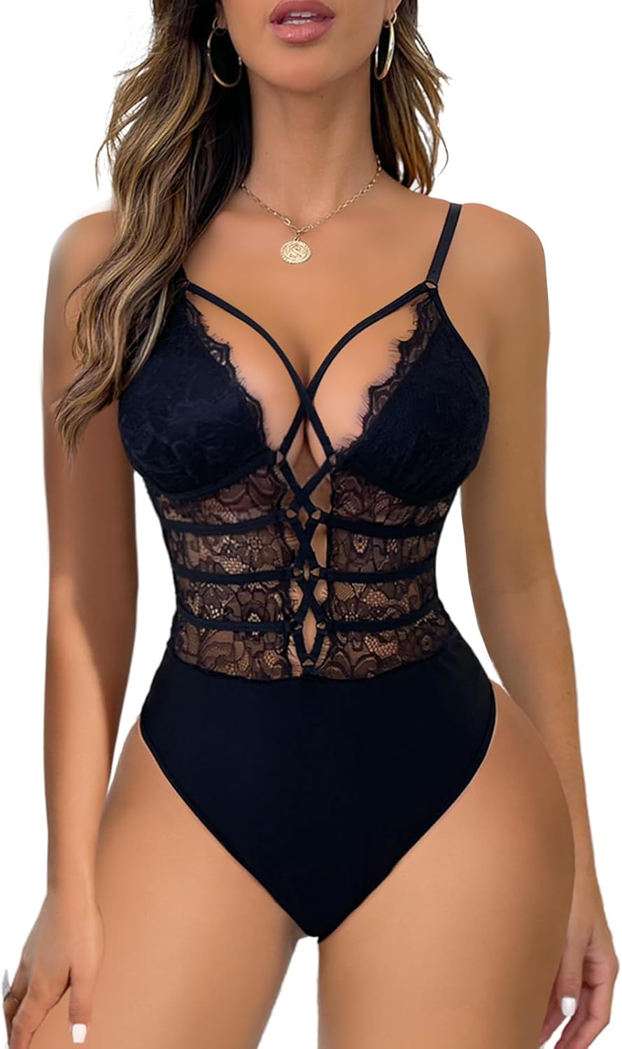 Women Sexy Bodysuit One Piece Babydoll Lingerie Lace Teddy Negligee